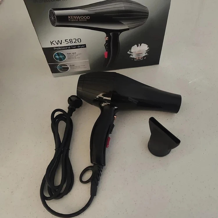 سشوار حرفه ای کنوود مدل KW-5820 از سری سشوارهای محبوب و حرفه ای با موتور AC بوده که قدرتی ۷۰۰۰ واتی است. این توان برای یک سشوار بسیار بالا و عالی است، چرا که دایره کارکرد آن را بسیار گسترده بوده و این قدرت برای خشک کردن و حالت دادن هر نوع مو مناسب می باشد. این مدل از سشوار کنوود دارای طراحی ارگونومیکی بوده که در مدت زمان استفاده طولانی خستگی دست را تا حد چشم گیری کاهش می دهد. فناوری تولید یون دمای استاندارد 60 درجه سانتی گرادی و مراقبت از موی این سشوار از صدمات وارد شونده به مو در زمان سشوار کردن تا حد بالایی جلوگیری می کند. این سشوار بدنه ای پلاستیکی مقاوم تولید شده است.